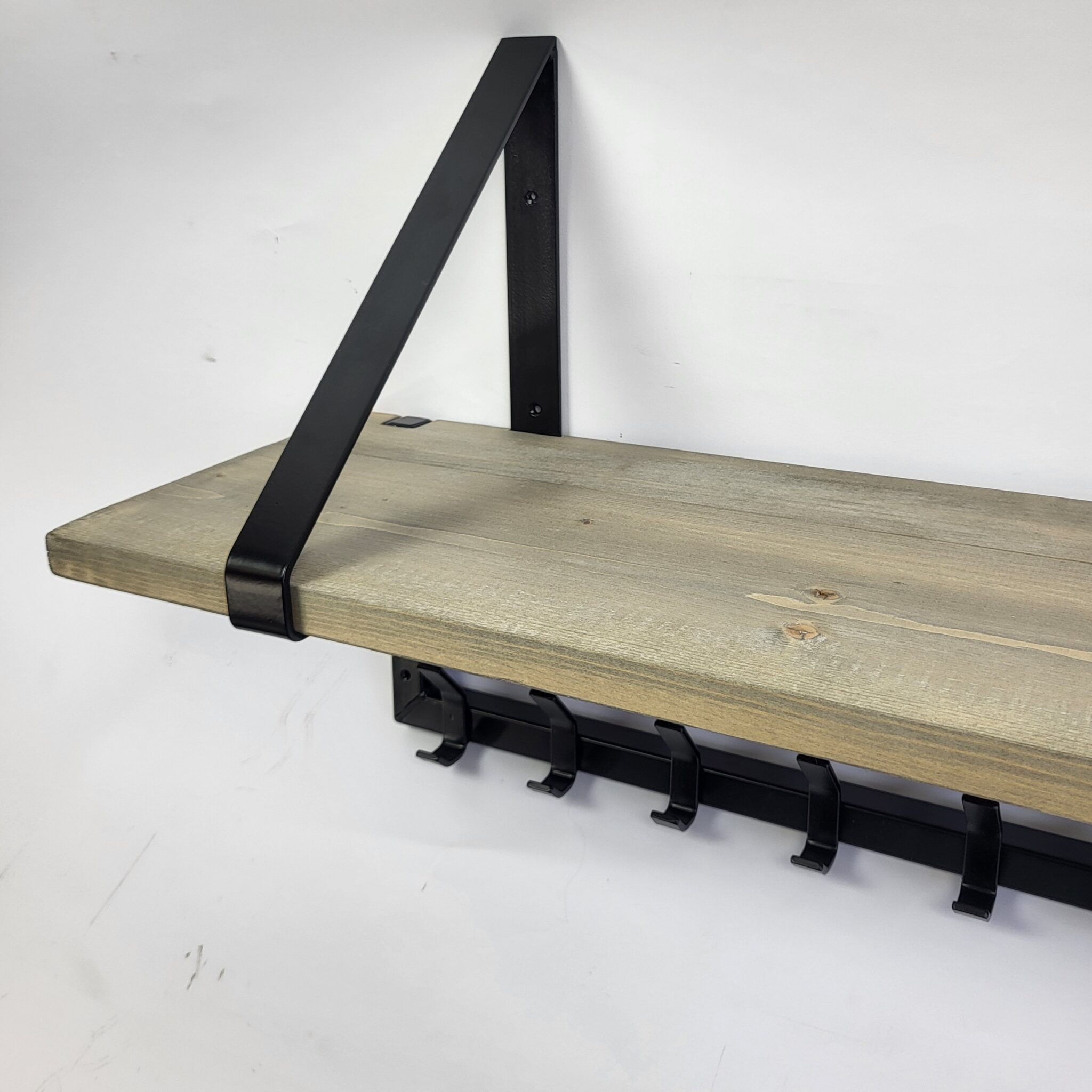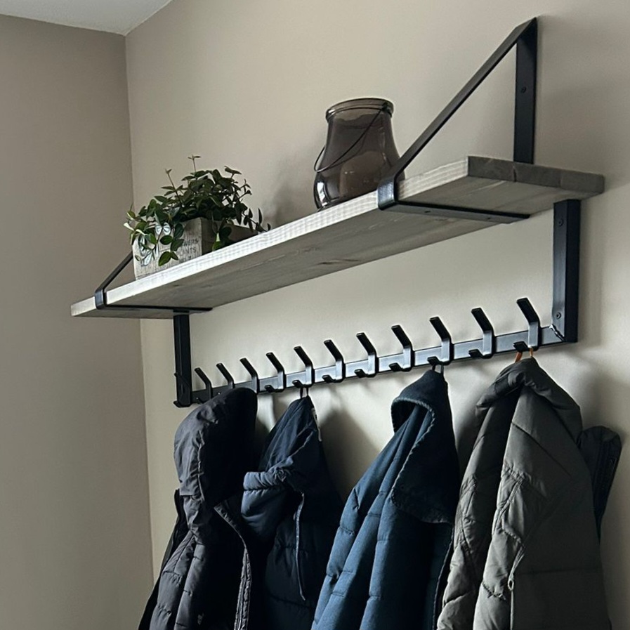 Hang je jassen, tassen en sjaals in stijl op aan deze prachtige industriële kapstok. De kapstok Eddy is gemaakt van een zwart stalen frame, afgewerkt met een robuuste oldgrey planken. Omdat ik alle meubelen in eigen werkplaats op bestelling maak kan ik daar natuurlijk (op aanvraag) eenvoudig meer of minder haken van maken.