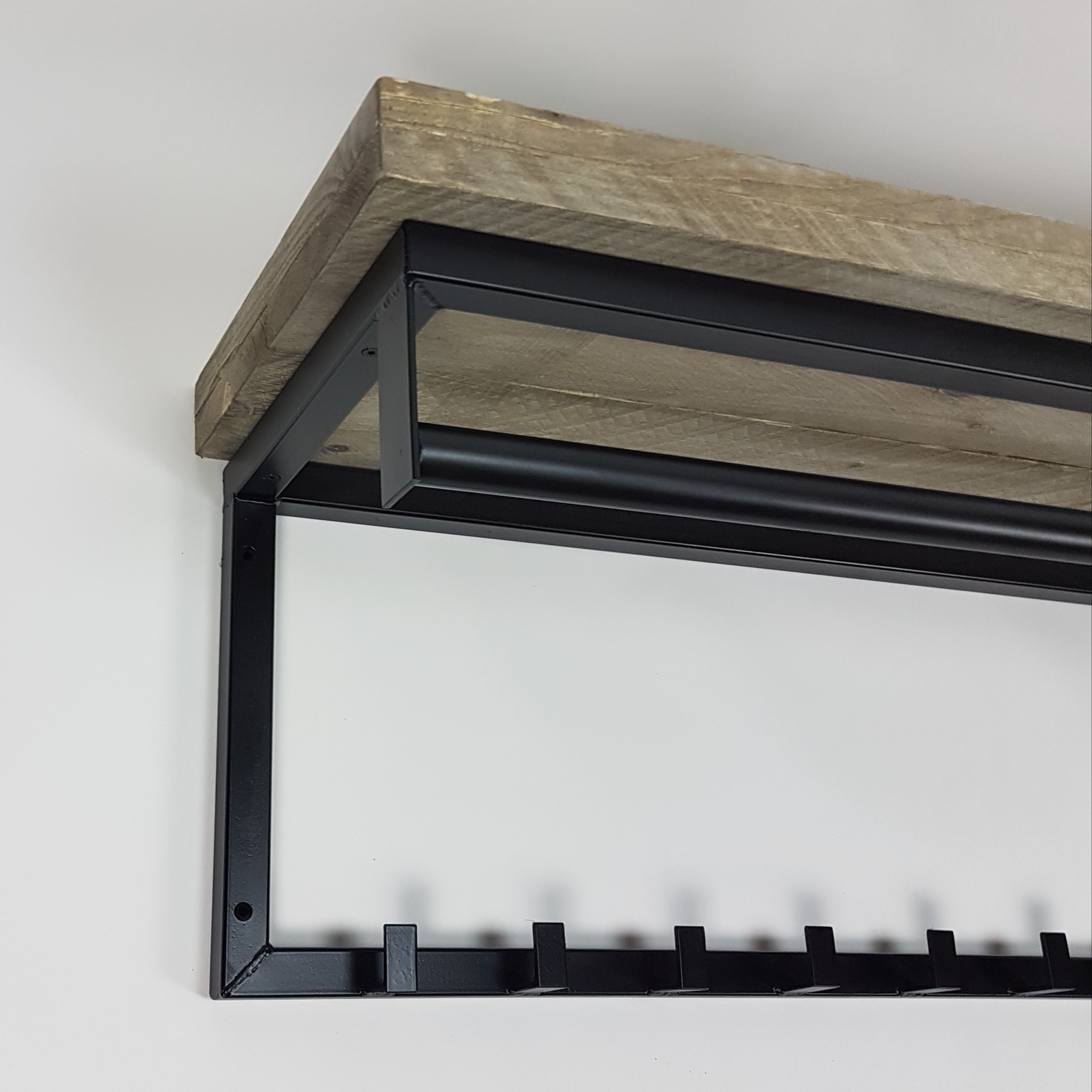 Neem contact op voor maatwerk offerteDe kapstok Michal is gemaakt van een zwart stalen frame, afgewerkt met stoere planken. Omdat ik alle meubelen in eigen werkplaats op bestelling maak kunnen we daar natuurlijk (op aanvraag) eenvoudig meer of minder haken van maken.